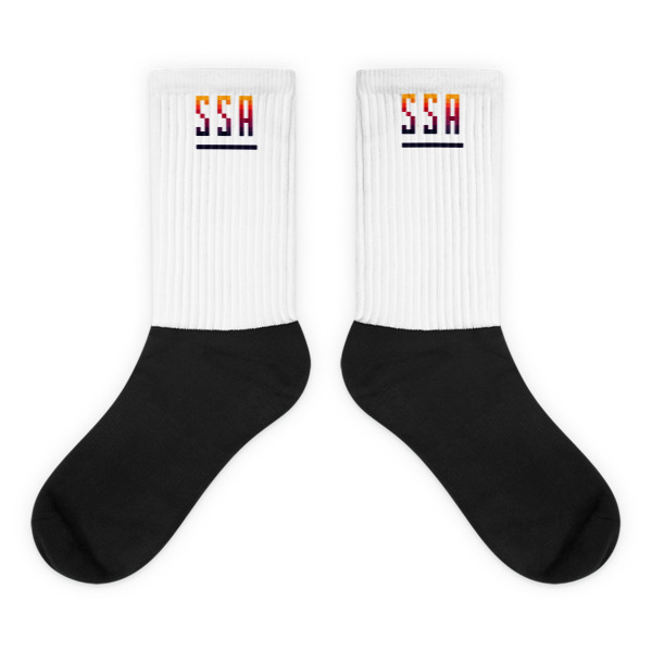 These socks will give you maximum comfort and style simultaneously! The top of the sock is printed, the bottom portion is solid black, and each sock is printed individually in the USA.